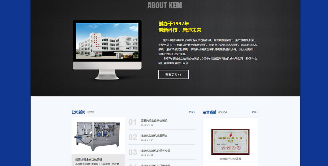 溫州科迪機(jī)械有限公司專業(yè)從事食品機(jī)械、制藥機(jī)械的研發(fā)、生產(chǎn)及相關(guān)服務(wù)。主要產(chǎn)品有:中包數(shù)袋計(jì)數(shù)全自動(dòng)包裝機(jī), 拉鏈自立袋給袋式包裝機(jī),粉末給袋式包裝機(jī),顆粒給袋式包裝機(jī),液體給袋式包裝機(jī),多物料給袋式包裝機(jī)等機(jī)器及成套設(shè)備。