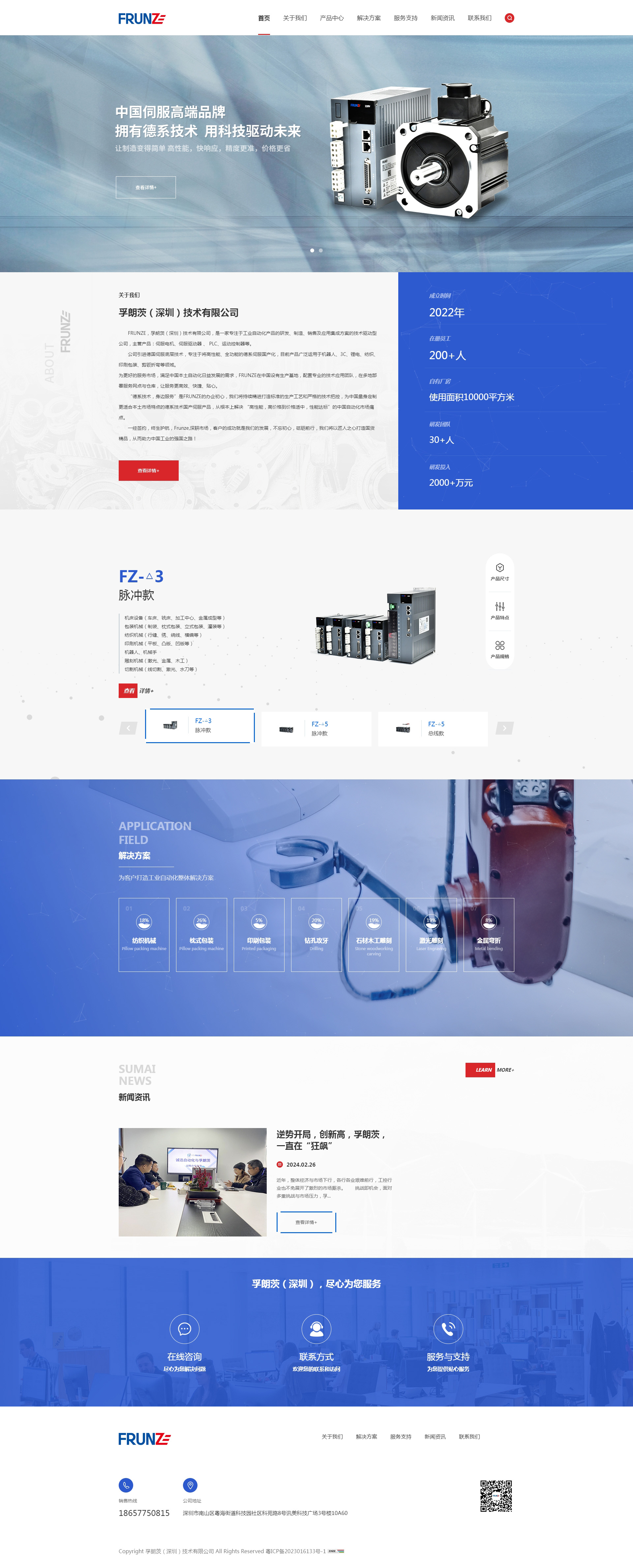 FRUNZE,孚朗茨(深圳)技術(shù)有限公司,是一家專注于工業(yè)自動化產(chǎn)品的研發(fā)、制造、銷售及應(yīng)用集成方案的技術(shù)驅(qū)動型公司,主營產(chǎn)品:伺服電機、伺服驅(qū)動器 、 PLC、運動控制器等。公司引進德國伺服底層技術(shù),專注于將高性能、全功能的德系伺服國產(chǎn)化,目前產(chǎn)品廣泛運用于機器人、3C、鋰電、紡織、印刷包裝、剪鈑折彎等領(lǐng)域。