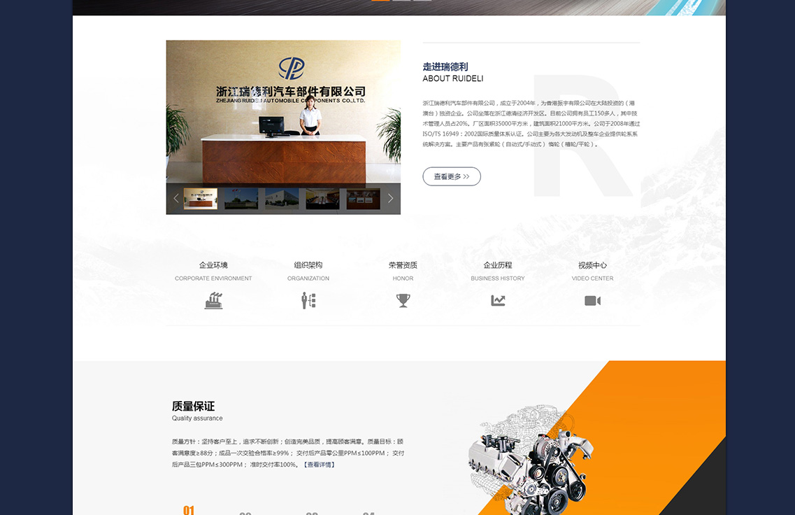 浙江瑞德利汽車(chē)部件有限公司,成立于2004年,為香港振宇有限公司在大陸投資的(港澳臺(tái))獨(dú)資企業(yè)。公司坐落在浙江德清經(jīng)濟(jì)開(kāi)發(fā)區(qū)。目前公司擁有員工150多人,其中技術(shù)管理人員占20%。廠區(qū)面積35000平方米,建筑面積21000平方米。公司于2008年通過(guò)ISO/TS 16949:2002國(guó)際質(zhì)量體系認(rèn)證。公司主要為各大發(fā)動(dòng)機(jī)及整車(chē)企業(yè)提供輪系系統(tǒng)解決方案。主要產(chǎn)品有張緊輪(自動(dòng)式/手動(dòng)式) 惰輪(槽輪/平輪)。