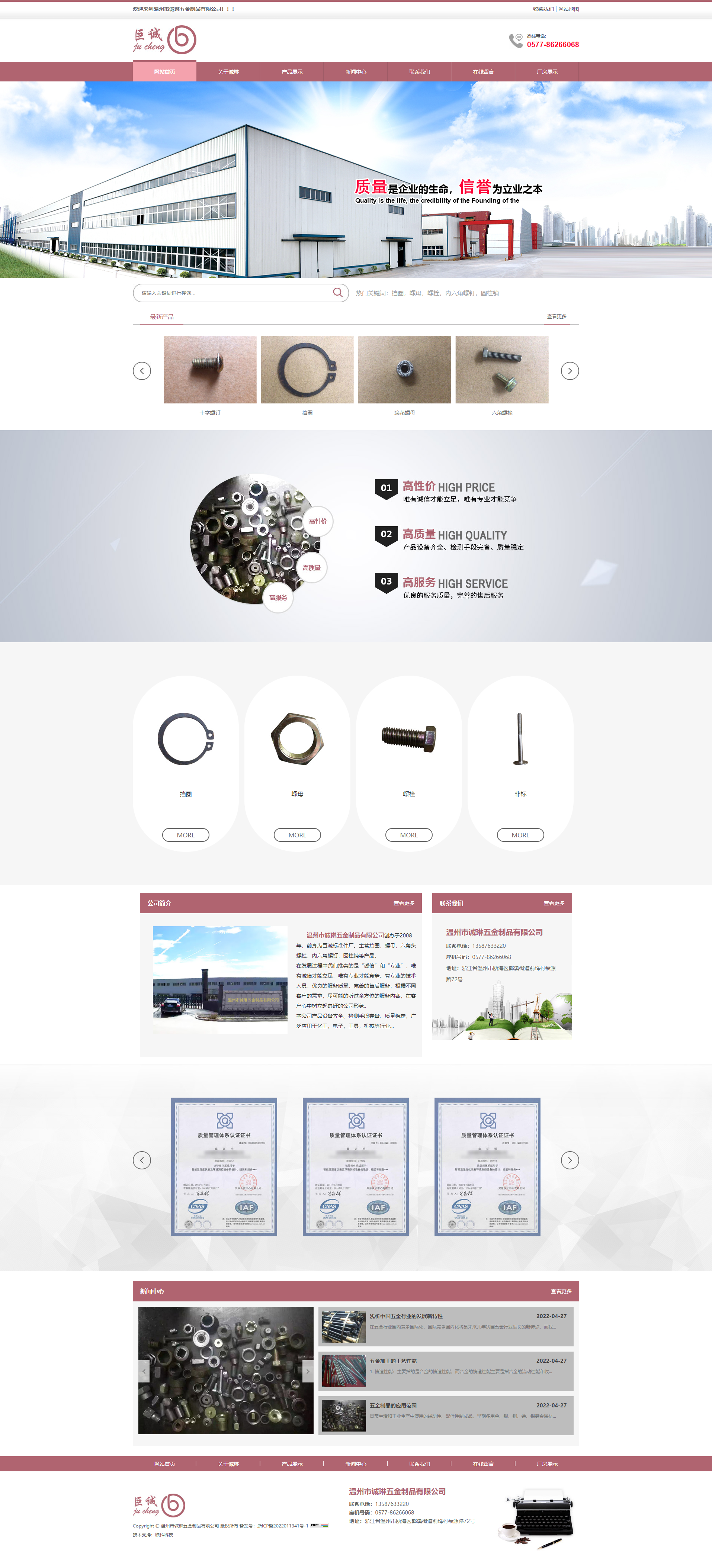 溫州市誠琳五金制品有限公司創(chuàng)辦于2008年,前身為巨誠標準件廠。主營擋圈,螺母,六角頭螺栓,內六角螺釘,圓柱銷等產品。在發(fā)展過程中我們推崇的是“誠信”和“專業(yè)”,唯有誠信才能立足,唯有專業(yè)才能競爭。有專業(yè)的技術人員,優(yōu)良的服務質量,完善的售后服務,根據不同客戶的需求,盡可能的聽過全方位的服務內容,在客戶心中樹立起良好的公司形象。