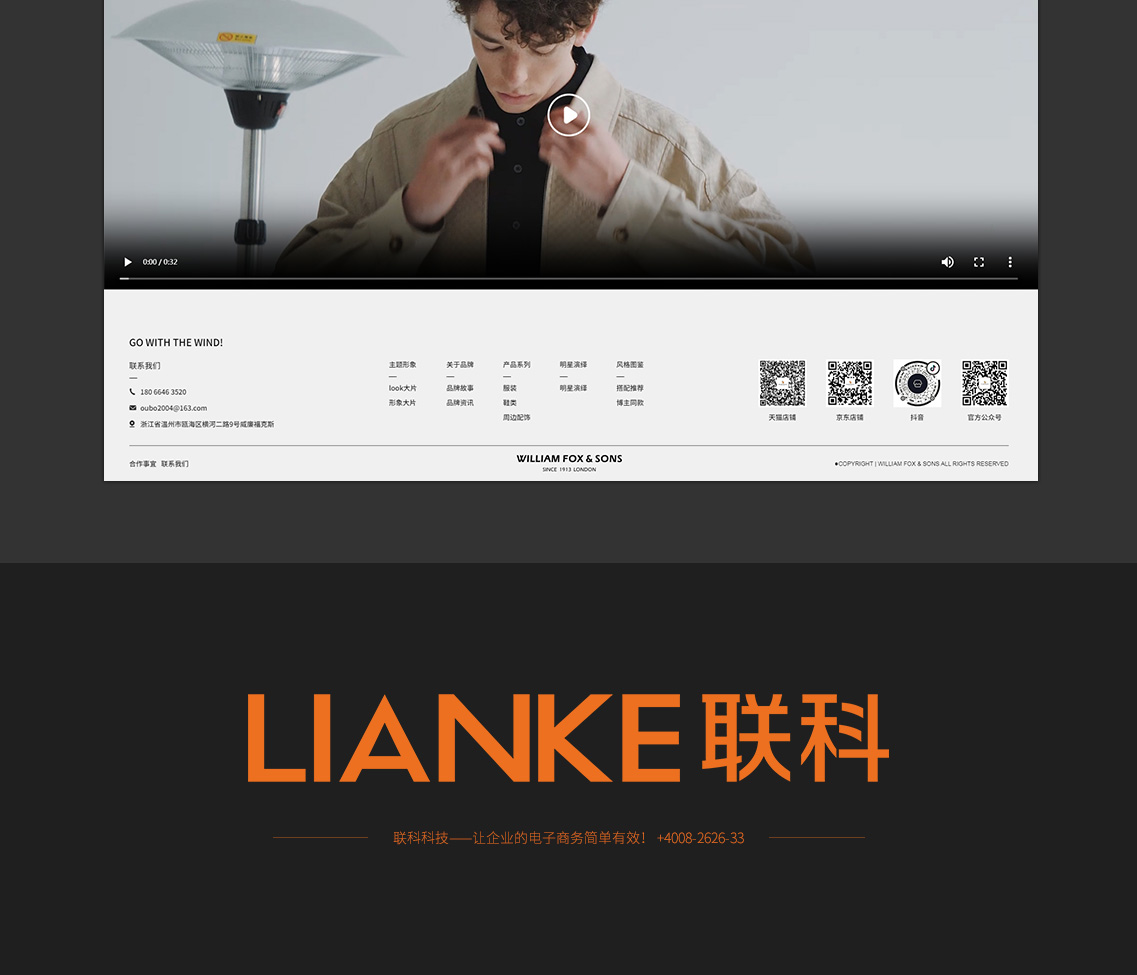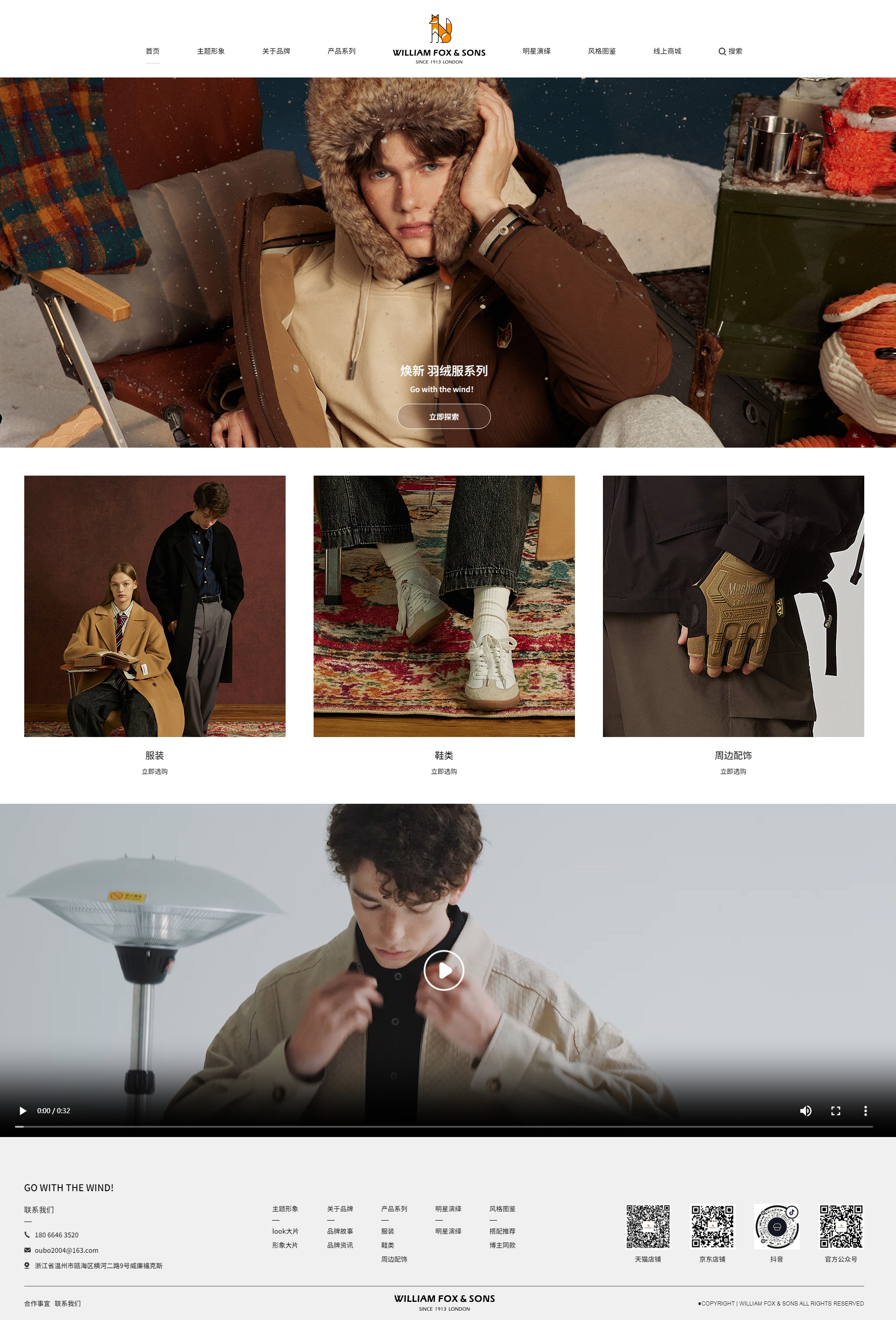 WILLIAM FOX & SONS品牌始創(chuàng)于1913年的英國(guó)倫敦。1895年,英裔美國(guó)人威廉??怂瓜壬诿绹?guó)緬因州霍爾頓的卡爾??怂勾蠼稚祥_設(shè)了名為WILLIAM FOX &SONS的服飾店,專營(yíng)男士定制服飾與運(yùn)動(dòng)用品。小狐貍是WILLIAMFOX & SONS的品牌標(biāo)識(shí),象征著機(jī)智、敏捷。