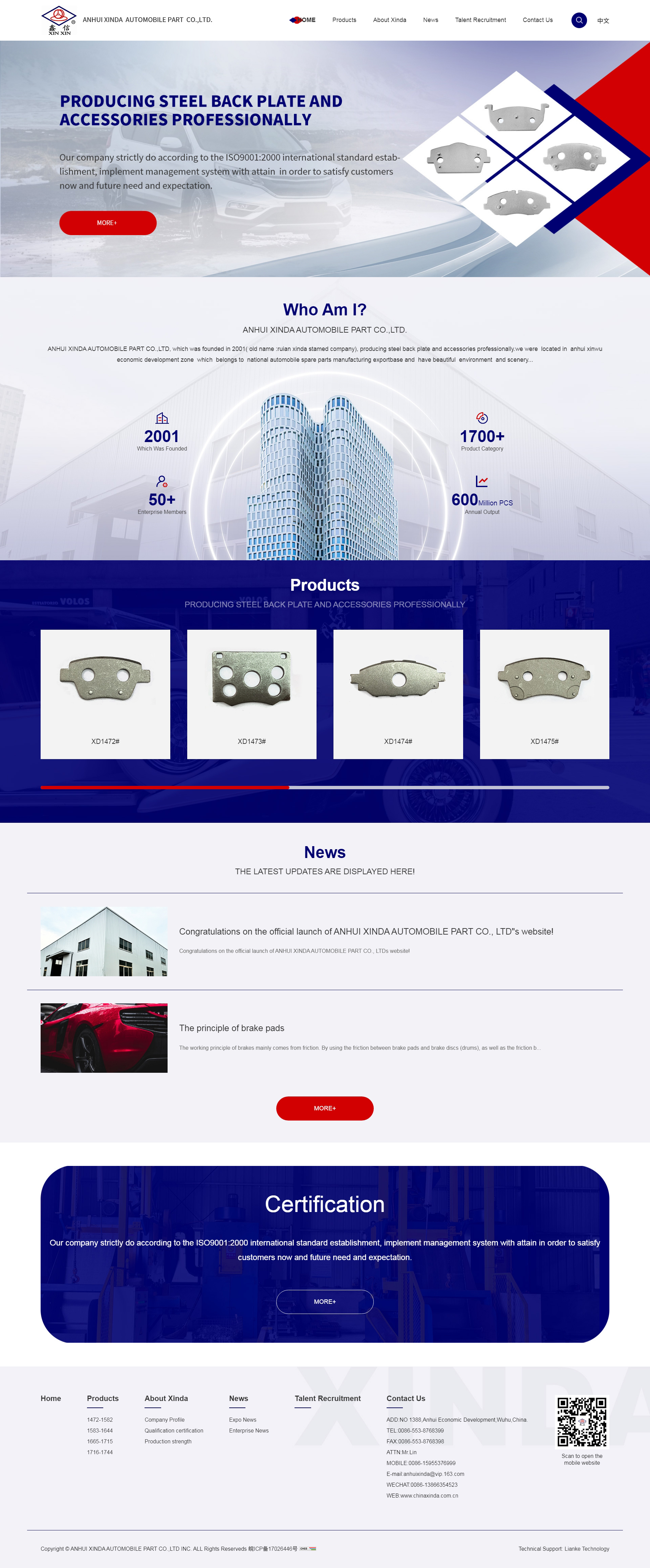 安徽鑫達汽車部件有限公司,成立于2001年,前身是瑞安鑫達汽車部件有限公司,是一家專業(yè)汽車、摩托車、工程機械剎車片鋼背以及附件的生產(chǎn)廠家,坐落于環(huán)境優(yōu)美、風(fēng)景秀麗、交通十分便捷的長江之濱,著名汽車零部件生產(chǎn)出口基地—蕪湖機械工業(yè)園。