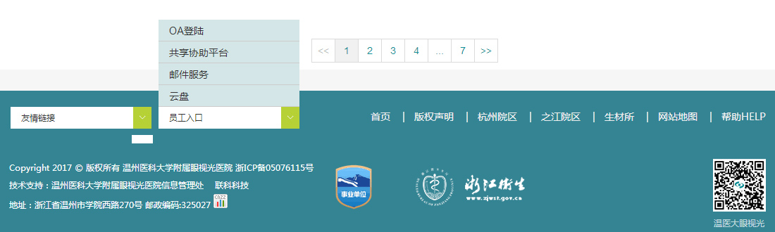 底部分支導(dǎo)航各個分院的連接,員工OA、云盤等實(shí)用性連接,直觀可視,更加便捷。