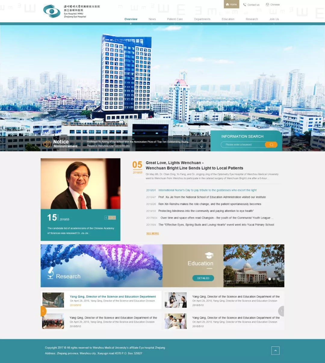 溫州醫(yī)科大學(xué)附屬眼視光醫(yī)院成立于1998年,2009年經(jīng)省衛(wèi)生廳批準(zhǔn)增掛"浙江省眼科醫(yī)院",設(shè)有溫州總院、杭州院區(qū)、之江院區(qū)、上海院區(qū)四個院區(qū),是目前浙江省唯一一家三級甲等眼科??漆t(yī)院。經(jīng)過近二十年的發(fā)展,醫(yī)院形成了集醫(yī)療、教學(xué)、科研、產(chǎn)業(yè)、公益、推廣為一體的眼視光體系。