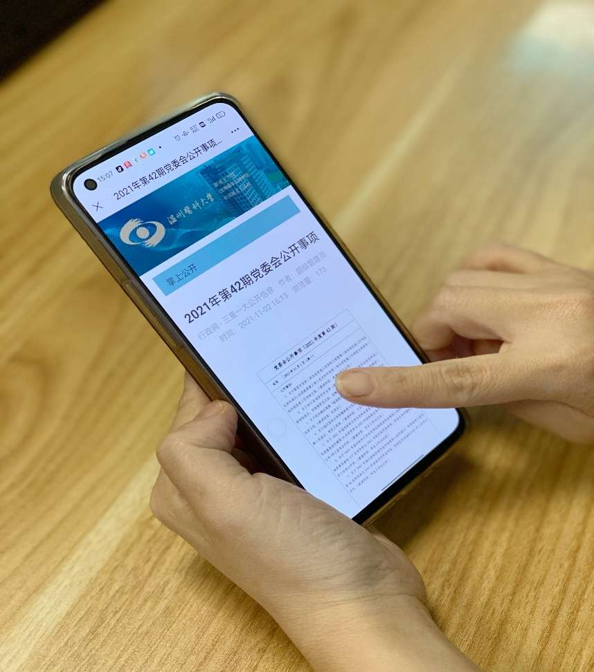 “掌上”的具體依托是什么?當(dāng)前,微信已成為信息交流和傳播的前沿陣地,將黨務(wù)院務(wù)公開信息在微信平臺(tái)上整合集成是智慧監(jiān)督的有效途徑。借助企業(yè)微信號(hào),于今年9月搭建黨務(wù)院務(wù)“掌上公開”平臺(tái),以實(shí)現(xiàn)全程化、實(shí)時(shí)化監(jiān)督。