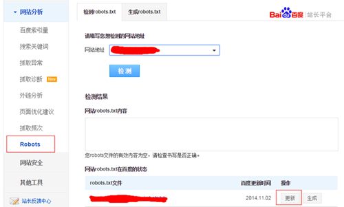 如果看到robots內(nèi)容和你更改后的內(nèi)容不一致,有幾種可能:第一種可能是網(wǎng)站沒有全面布局,因?yàn)橛械恼军c(diǎn)服務(wù)器可能在很多地方,你需要確認(rèn)robots是否已全部推送;第二種可能是百度沒有及時(shí)做更新,可以通過robots檢測(cè)工具下方的更新按鈕來告訴百度Robots有變化。