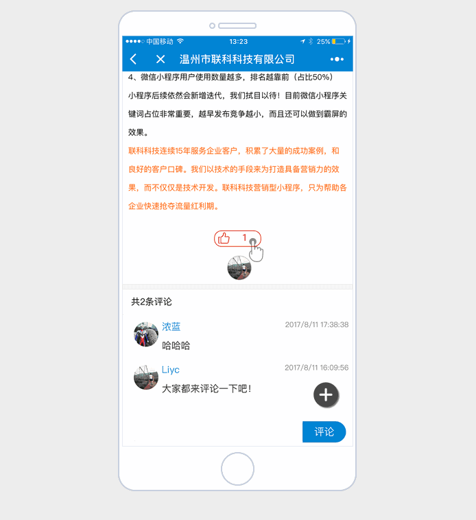 實(shí)現(xiàn)對某篇文章或內(nèi)容進(jìn)行點(diǎn)贊并統(tǒng)計(jì),與用戶產(chǎn)生交互關(guān)系,提高用戶粘度。