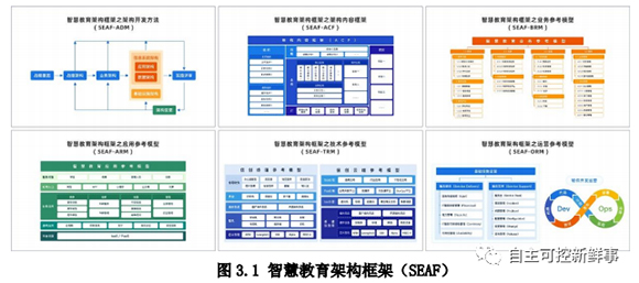 《2022中國(guó)智慧教育白皮書-基于信創(chuàng)體系的智慧教育》(以下簡(jiǎn)稱《白皮書》)提出了智慧教育的架構(gòu)框架(SEAF),包括架構(gòu)開發(fā)方法、架構(gòu)內(nèi)容框架、智慧教育業(yè)務(wù)參考模型、智慧教育應(yīng)用參考模型、信創(chuàng)技術(shù)參考模型和信創(chuàng)運(yùn)營(yíng)參考模型六大部分內(nèi)容。該架構(gòu)框架可以為智慧教育(教育機(jī)構(gòu)的數(shù)字化轉(zhuǎn)型)和教育信創(chuàng)(教育機(jī)構(gòu)的信創(chuàng)化轉(zhuǎn)型)提供系統(tǒng)性的方法論指導(dǎo)。